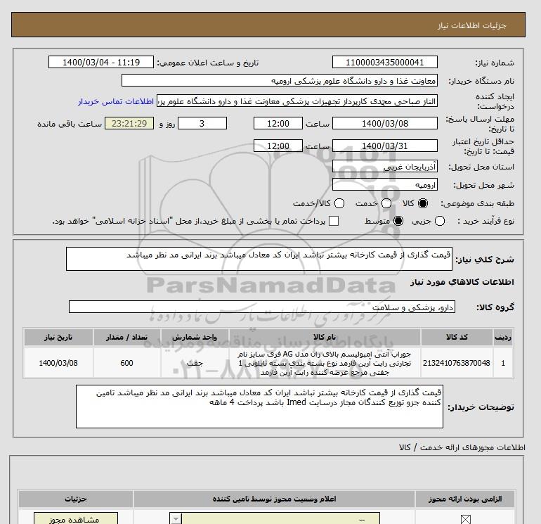 نام دستگاه خریدار:معاونت غذا و دارو دانشگاه علوم پزشکی ارومیه