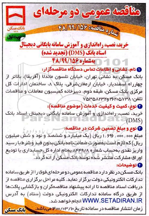مناقصه عمومی دو مرحله ای شماره 48/99/156 نوبت اول