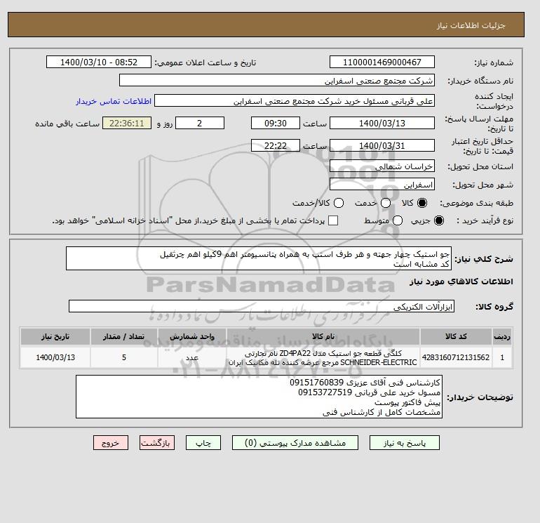 نام دستگاه خریدار:شرکت مجتمع صنعتی اسفراین