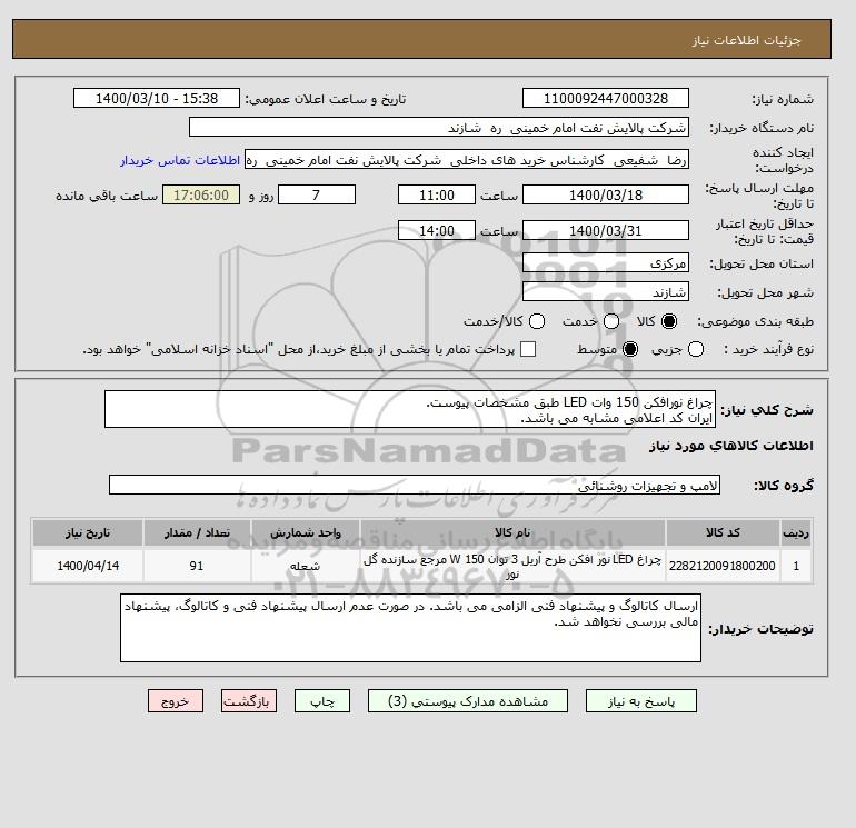 استعلام چراغ نورافکن 150 وات LED طبق مشخصات پیوست. ایران کد اعلامی مشابه می باشد., استعلام چراغ نورافکن 150 وات LED طبق مشخصات پیوست. ایران کد اعلامی مشابه می باشد.