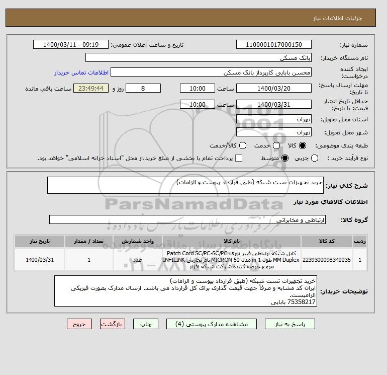 توضیحات خریدار:خرید تجهیزات تست شبکه (طبق قرارداد پیوست و الزامات) ایران کد مشابه و صرفاً جهت قیمت گذاری برای کل قرارداد می باشد. ارسال مدارک بصورت فیزیکی الزامیست. 75358217 بابایی