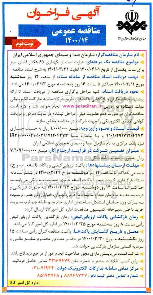 - نام سازمان مناقصه گزار: سازمان صدا و سیمای جمهوری اسلامی ایران
