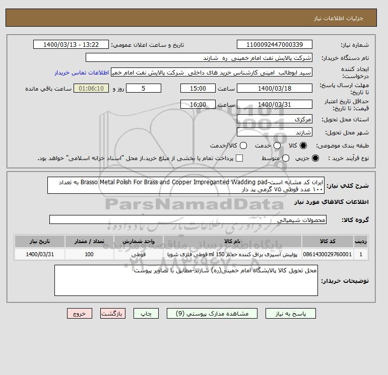 استعلام ایران کد مشابه است-Brasso Metal Polish For Brass and Copper Impreganted Wadding pad به تعداد ۱۰۰ عدد قوطی ۷۵ گرمی پد دار, استعلام ایران کد مشابه است-Brasso Metal Polish For Brass and Copper Impreganted Wadding pad به تعداد ۱۰۰ عدد قوطی ۷۵ گرمی پد دار
