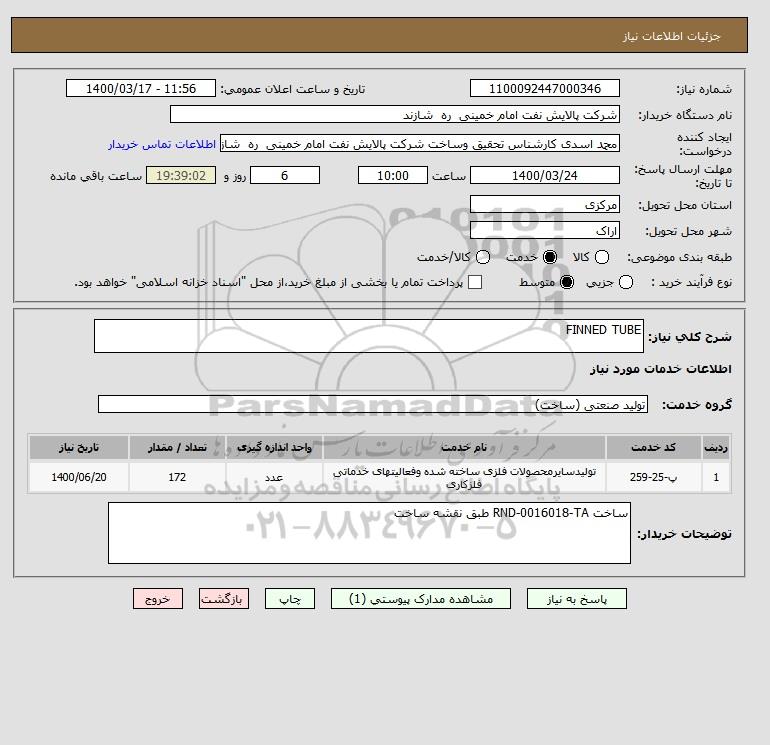 توضیحات خریدار:ساخت RND-0016018-TA طبق نقشه ساخت