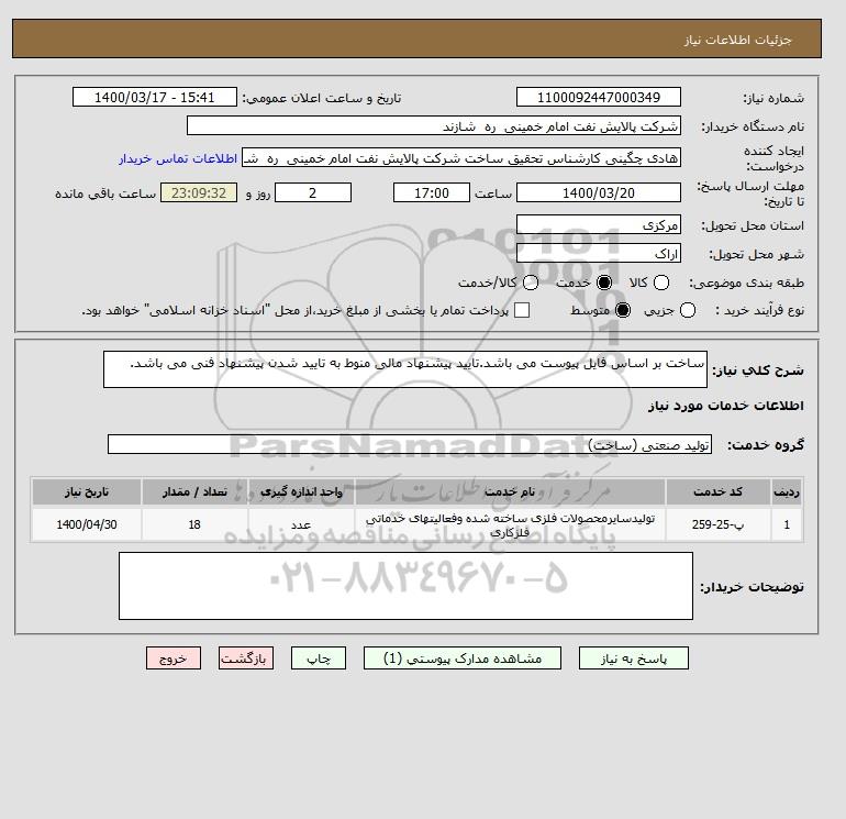 شرح کلی نیاز: ساخت بر اساس فایل پیوست می باشد.تایید پیشنهاد مالی منوط به تایید شدن پیشنهاد فنی می باشد.
