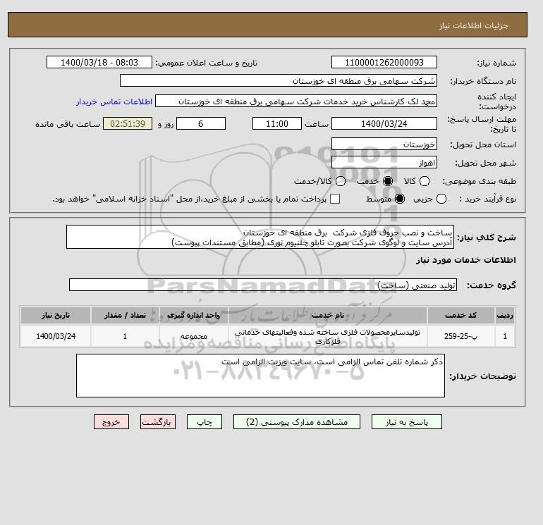 شرح کلی نیاز: ساخت و نصب حروف فلزی شرکت برق منطقه ای خوزستان