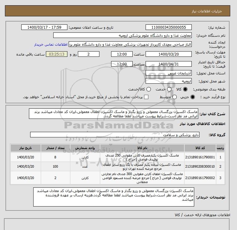 نام دستگاه خریدار:معاونت غذا و دارو دانشگاه علوم پزشکی ارومیه