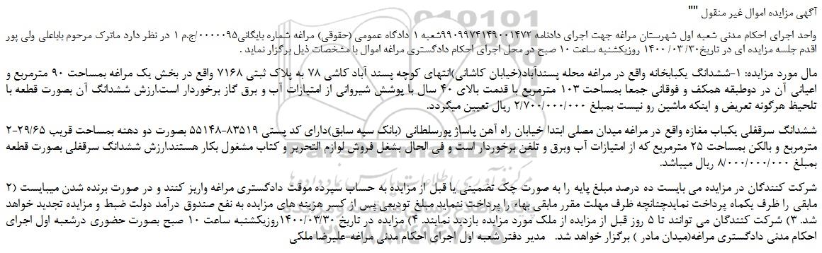 "آگهی مزایده اموال غیر منقول "