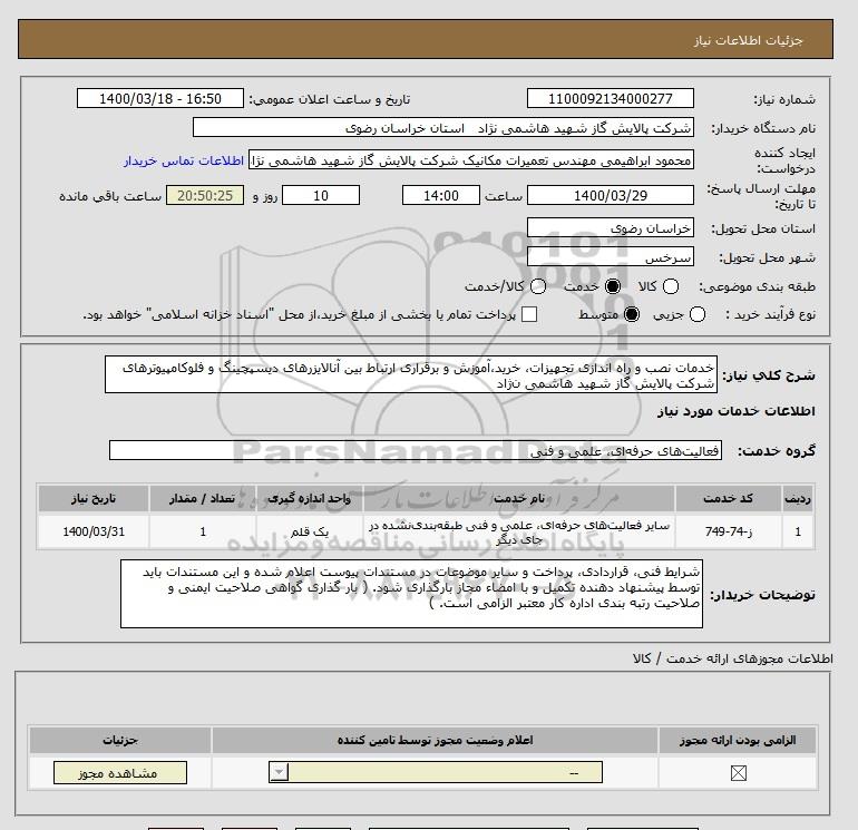 نام دستگاه خریدار:شرکت پالایش گاز شهید هاشمی نژاد استان خراسان رضوی
