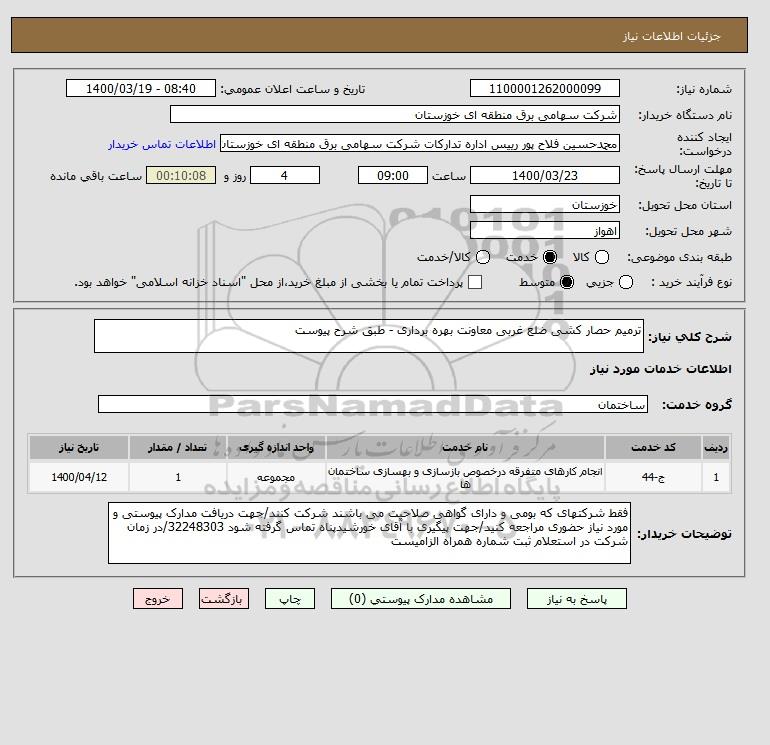 شرح کلی نیاز: ترمیم حصار کشی ضلع غربی معاونت بهره برداری - طبق شرح پیوست