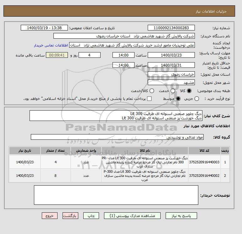 نام دستگاه خریدار:شرکت پالایش گاز شهید هاشمی نژاد استان خراسان رضوی