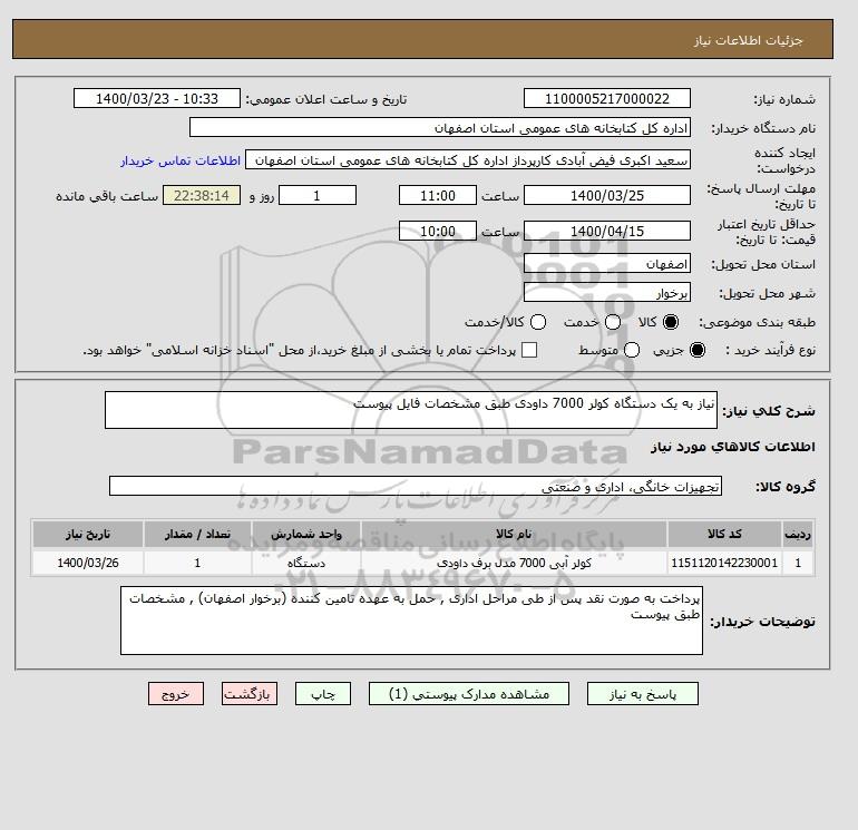 نام دستگاه خریدار:اداره کل کتابخانه های عمومی استان اصفهان
