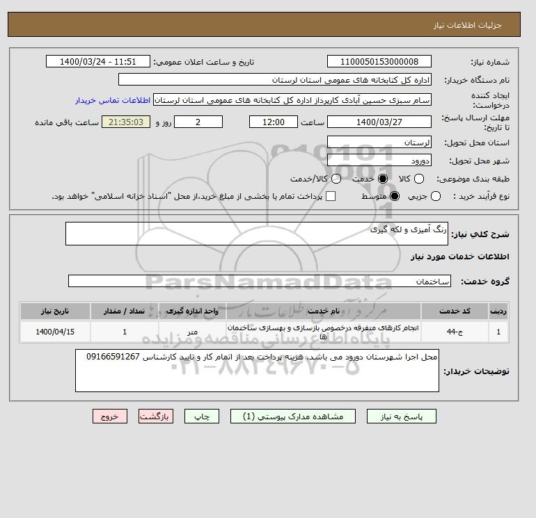 شرح کلی نیاز: رنگ آمیزی و لکه گیری