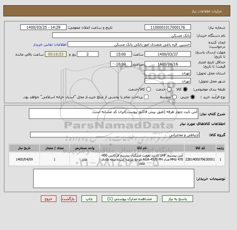 شرح کلی نیاز: آنتن ثابت چهار طرفه (طبق پیش فاکتور پیوست)ایران کد مشابه است