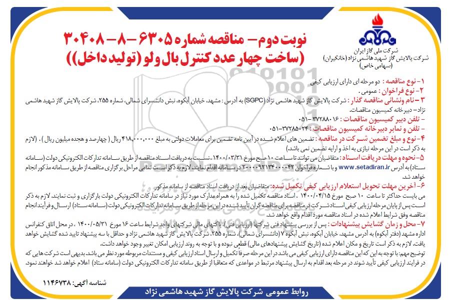 نوبت دوم - مناقصه شماره 6305- 8- 30408 ؟