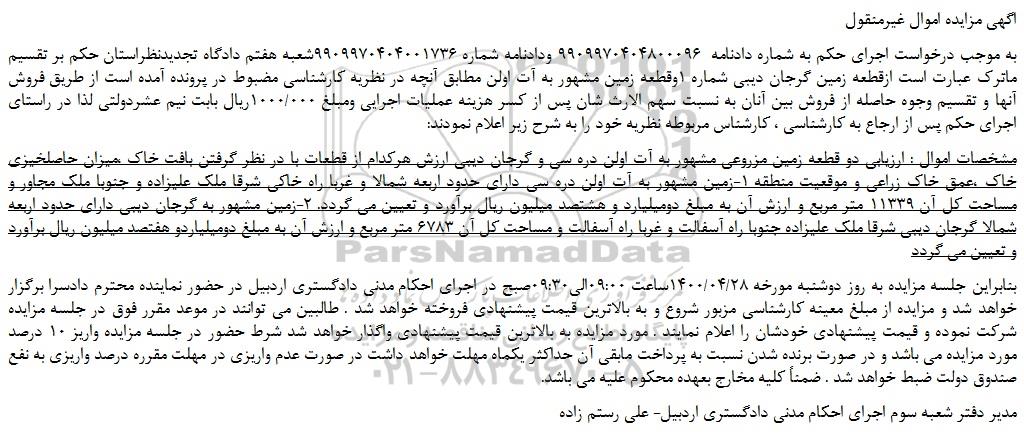 اگهی مزایده اموال غیرمنقول