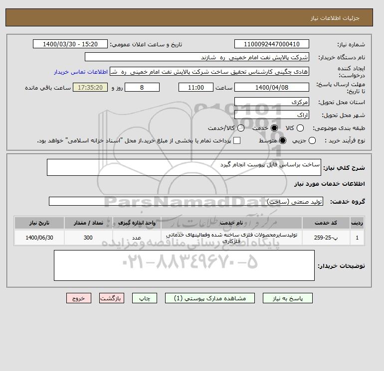شرح کلی نیاز: ساخت براساس فایل پیوست انجام گیرد