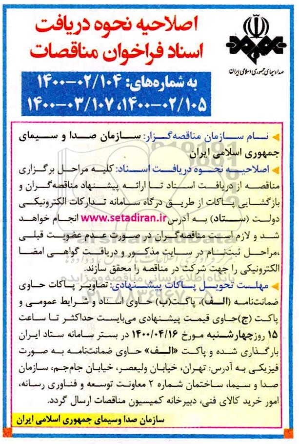 - نام سازمان مناقصه گزار: سازمان صدا و سیمای جمهوری اسلامی ایران