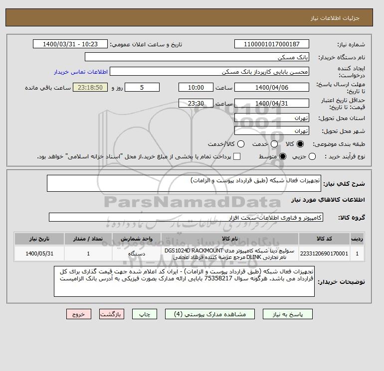 شرح کلی نیاز: تجهیزات فعال شبکه (طبق قرارداد پیوست و الزامات)