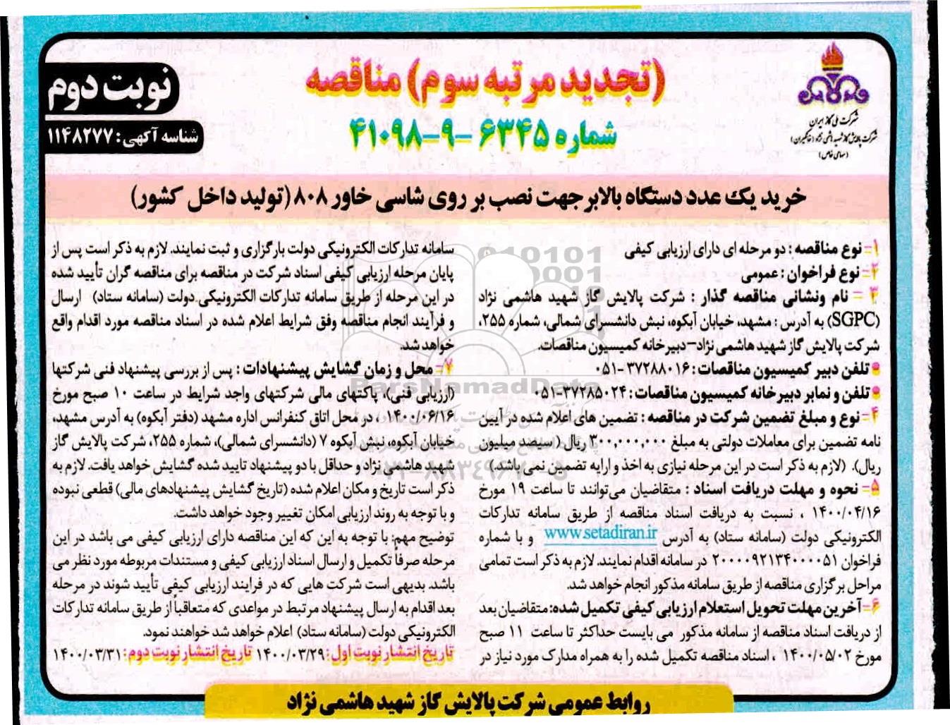 تجدید مرتبه سوم مناقصه شماره 6345-9-41098 نوبت دوم ؟
