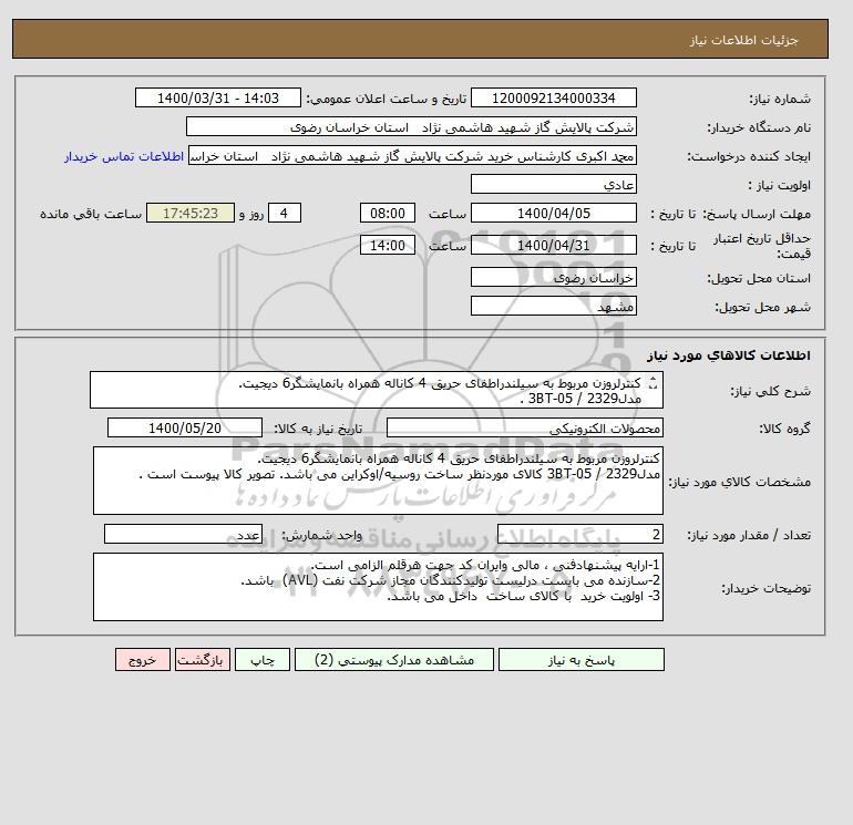 نام دستگاه خریدار:شرکت پالایش گاز شهید هاشمی نژاد استان خراسان رضوی