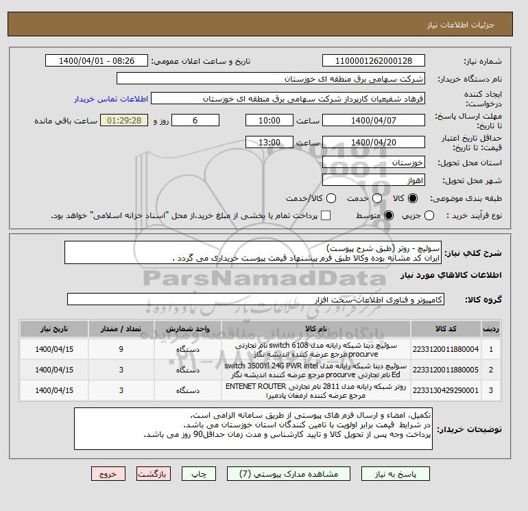 نام دستگاه خریدار:شرکت سهامی برق منطقه ای خوزستان