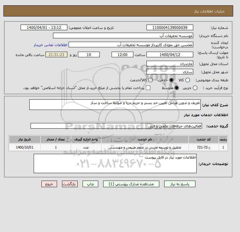شرح کلی نیاز: تعریف و تدوین مبانی تعیین حد بستر و حریم دریا و ضوابط ساخت و ساز