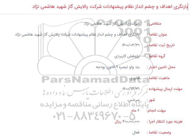 عنوان تقاضا : بازنگری اهداف و چشم انداز نظام پیشنهادات شرکت پالایش گاز شهید هاشمی نژاد