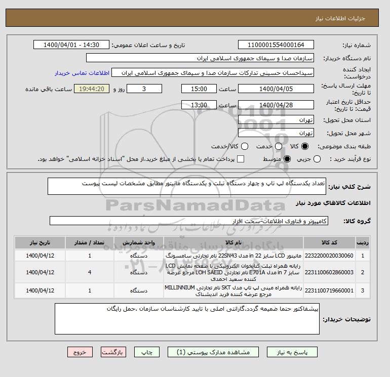 نام دستگاه خریدار:سازمان صدا و سیمای جمهوری اسلامی ایران