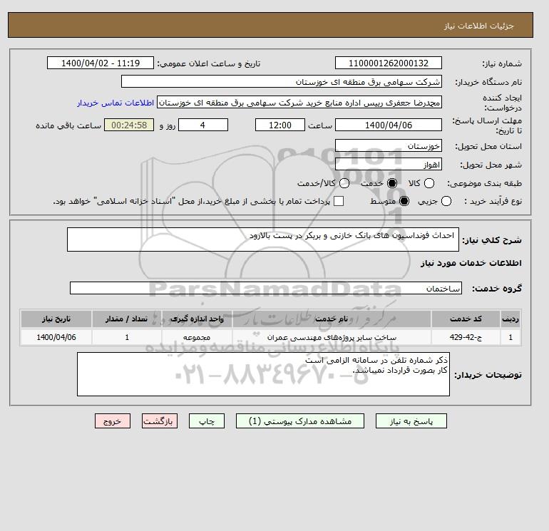 شرح کلی نیاز: احداث فونداسیون های بانک خازنی و بریکر در پست بالارود