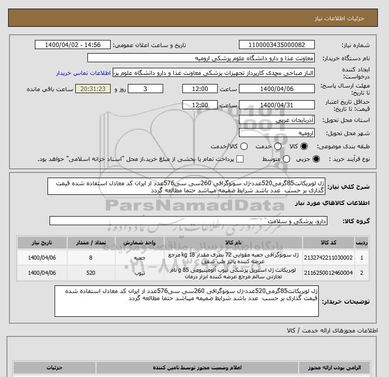 نام دستگاه خریدار:معاونت غذا و دارو دانشگاه علوم پزشکی ارومیه