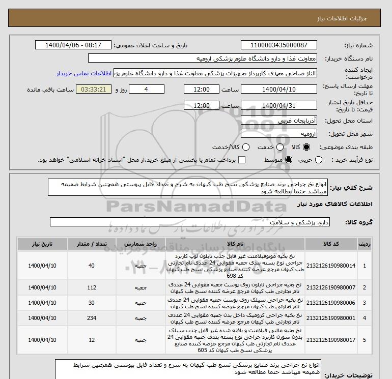 نام دستگاه خریدار:معاونت غذا و دارو دانشگاه علوم پزشکی ارومیه