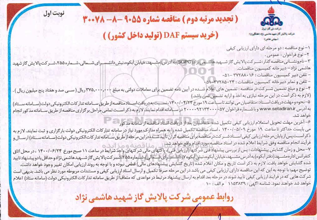 تجدید مرتبه دوم مناقصه خرید سیستم DAF , تجدید مرتبه دوم مناقصه خرید سیستم DAF
