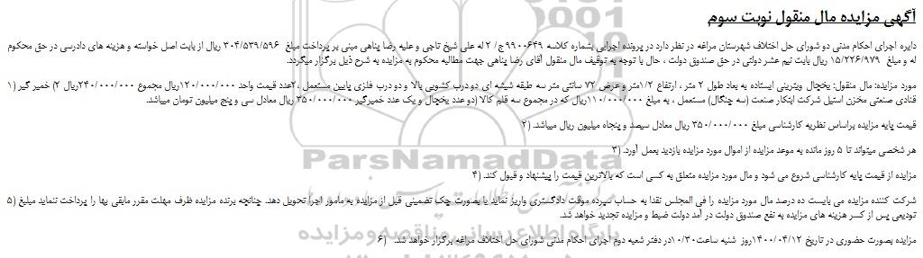 آگهی مزایده مال منقول نوبت سوم