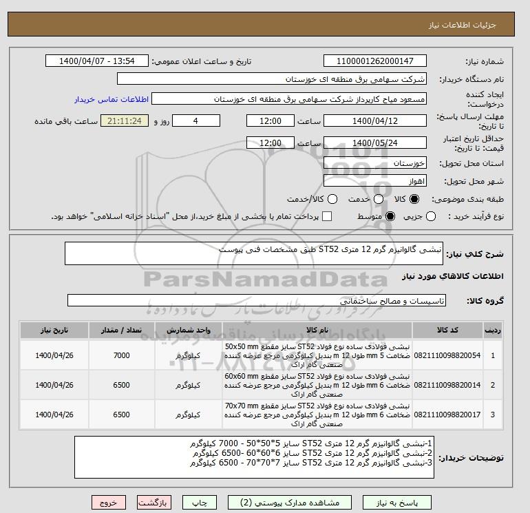 شرح کلی نیاز: نبشی گالوانیزم گرم 12 متری ST52 طبق مشخصات فنی پیوست