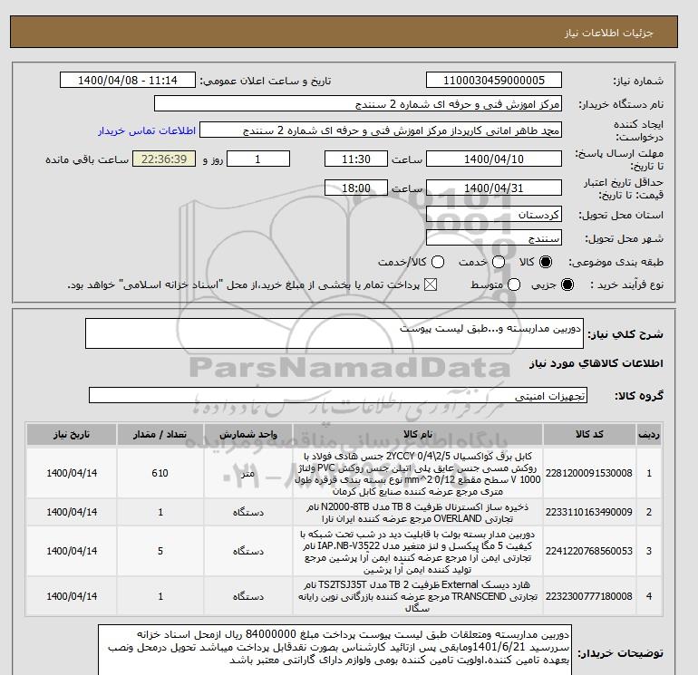 شرح کلی نیاز: دوربین مداربسته و...طبق لیست پیوست
