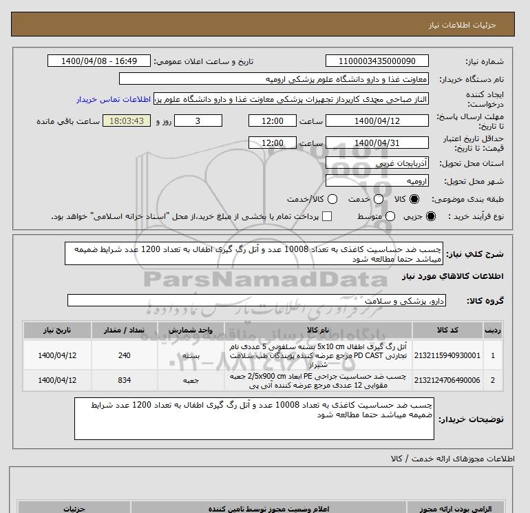 نام دستگاه خریدار:معاونت غذا و دارو دانشگاه علوم پزشکی ارومیه