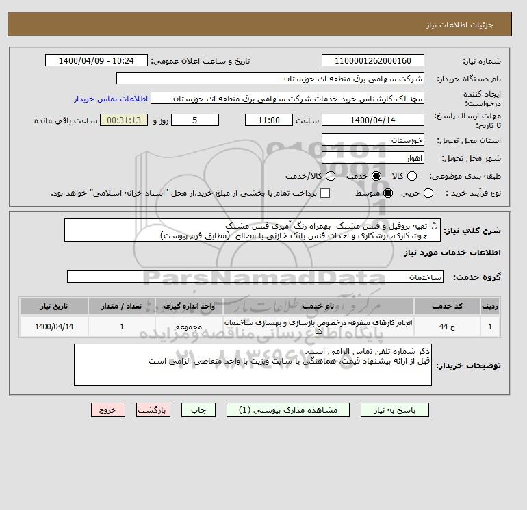 شرح کلی نیاز: تهیه پروفیل و فنس مشبک بهمراه رنگ آمیزی فنس مشبک