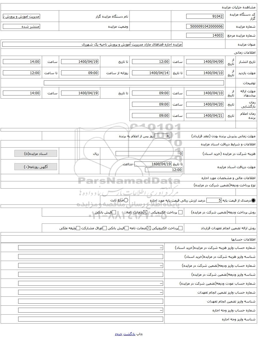 شماره مورد اجاره5100091042000008نوع برگزاری مزایده مزایده عمومی