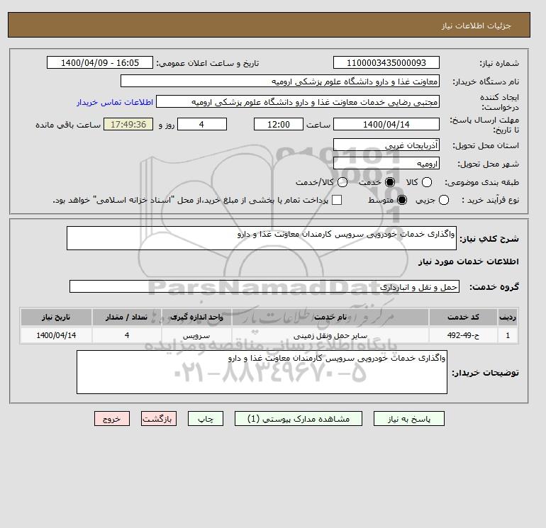 شرح کلی نیاز: واگذاری خدمات خودرویی سرویس کارمندان معاونت غذا و دارو