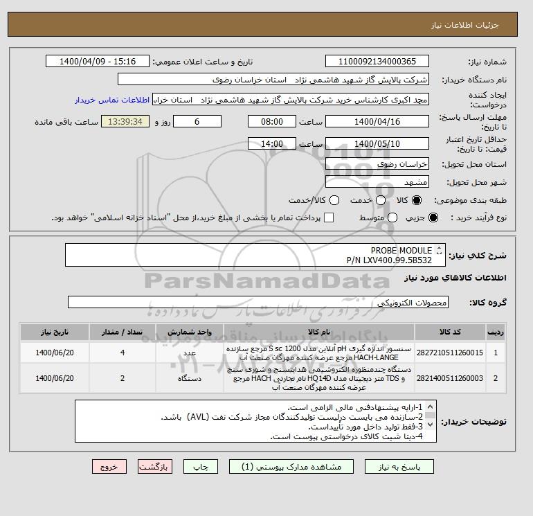 نام دستگاه خریدار:شرکت پالایش گاز شهید هاشمی نژاد استان خراسان رضوی