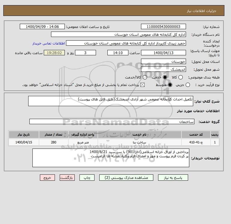 نام دستگاه خریدار:اداره کل کتابخانه های عمومی استان خوزستان