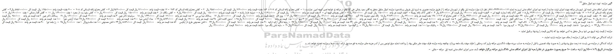 "آگهی مزایده  نوبت دوم اموال منقول"