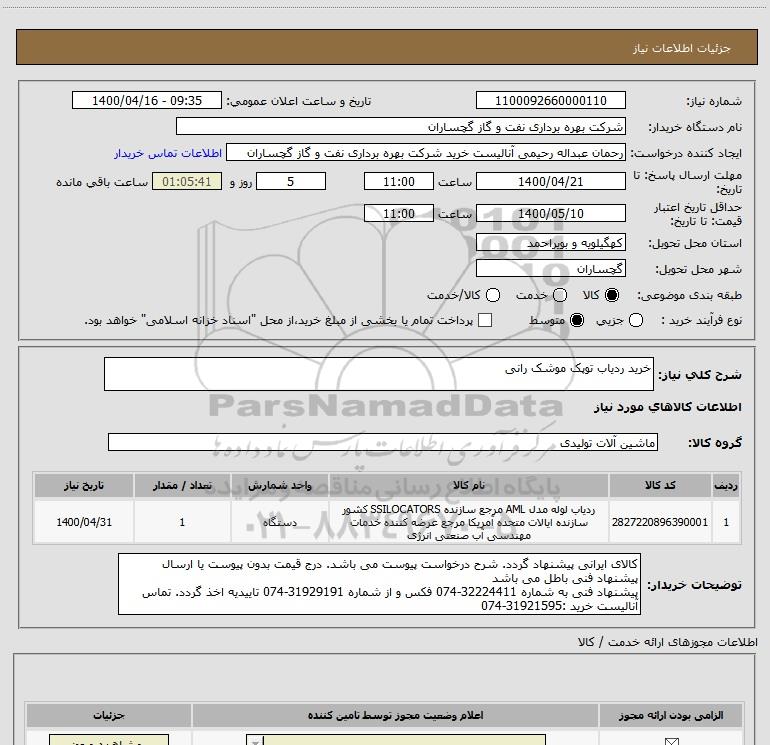 نام دستگاه خریدار:شرکت بهره برداری نفت و گاز گچساران