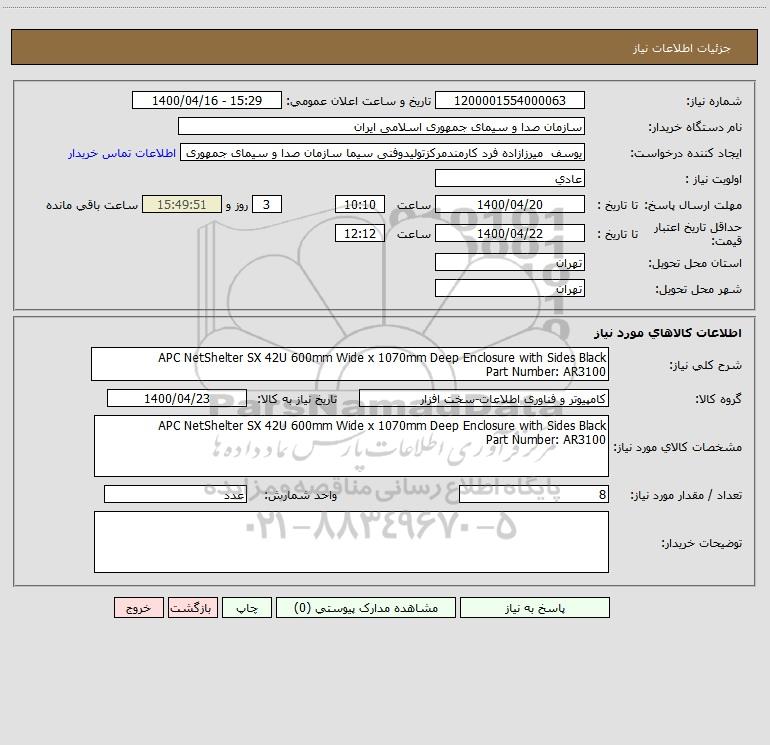 شرح کلی نیاز: APC NetShelter SX 42U 600mm Wide x 1070mm Deep Enclosure with Sides Black Part Number: AR3100