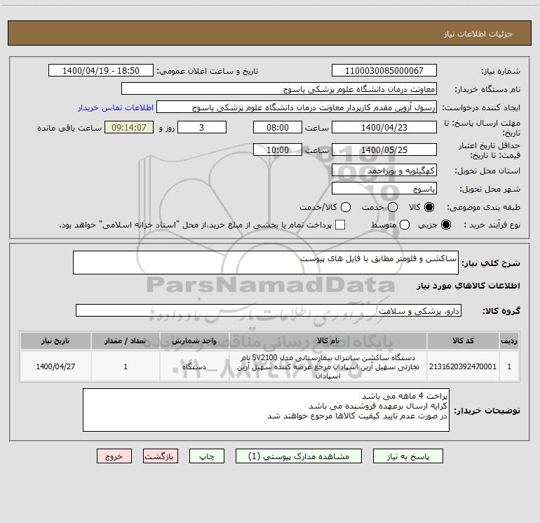 نام دستگاه خریدار:معاونت درمان دانشگاه علوم پزشکی یاسوج