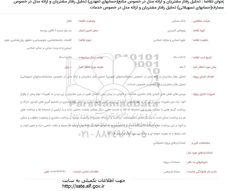 فراخوان تحلیل رفتار مشتریان و ارائه مدل در خصوص منابع , فراخوان تحلیل رفتار مشتریان و ارائه مدل در خصوص منابع
