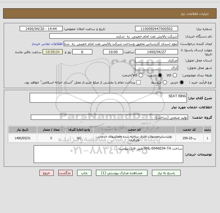 نام دستگاه خریدار:شرکت پالایش نفت امام خمینی ره شازند
