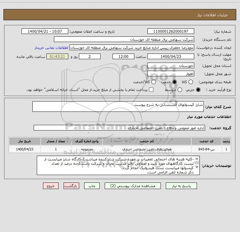 شرح کلی نیاز: شارژ کپسولهای آتشنشانی به شرح پیوست