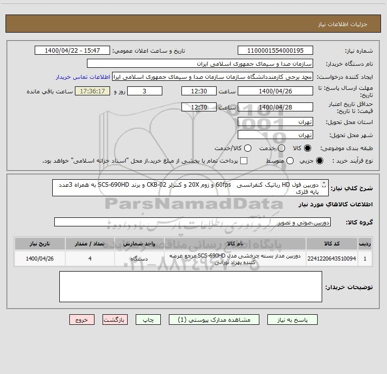 نام دستگاه خریدار:سازمان صدا و سیمای جمهوری اسلامی ایران
